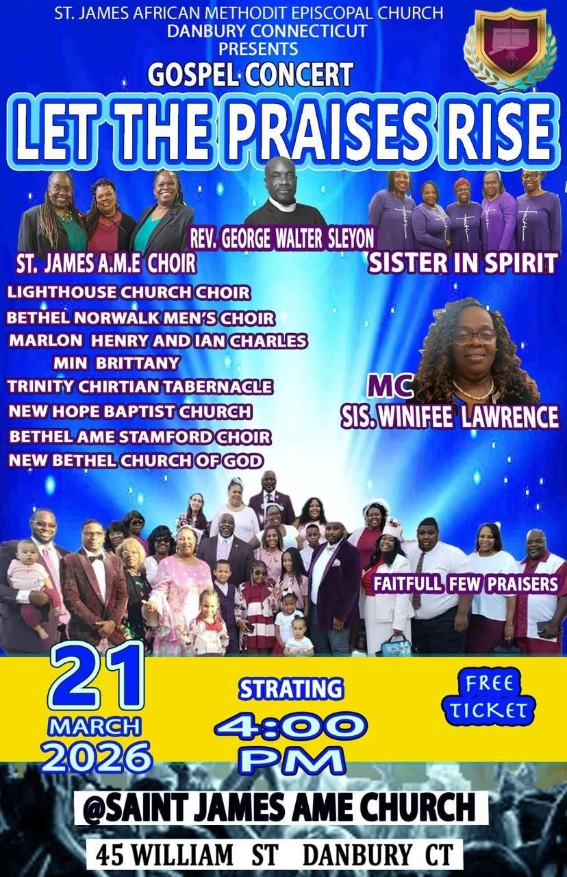 Hello, welcome to St. James AME Church in Danbury/Ct. Join us in person or on Zoom.